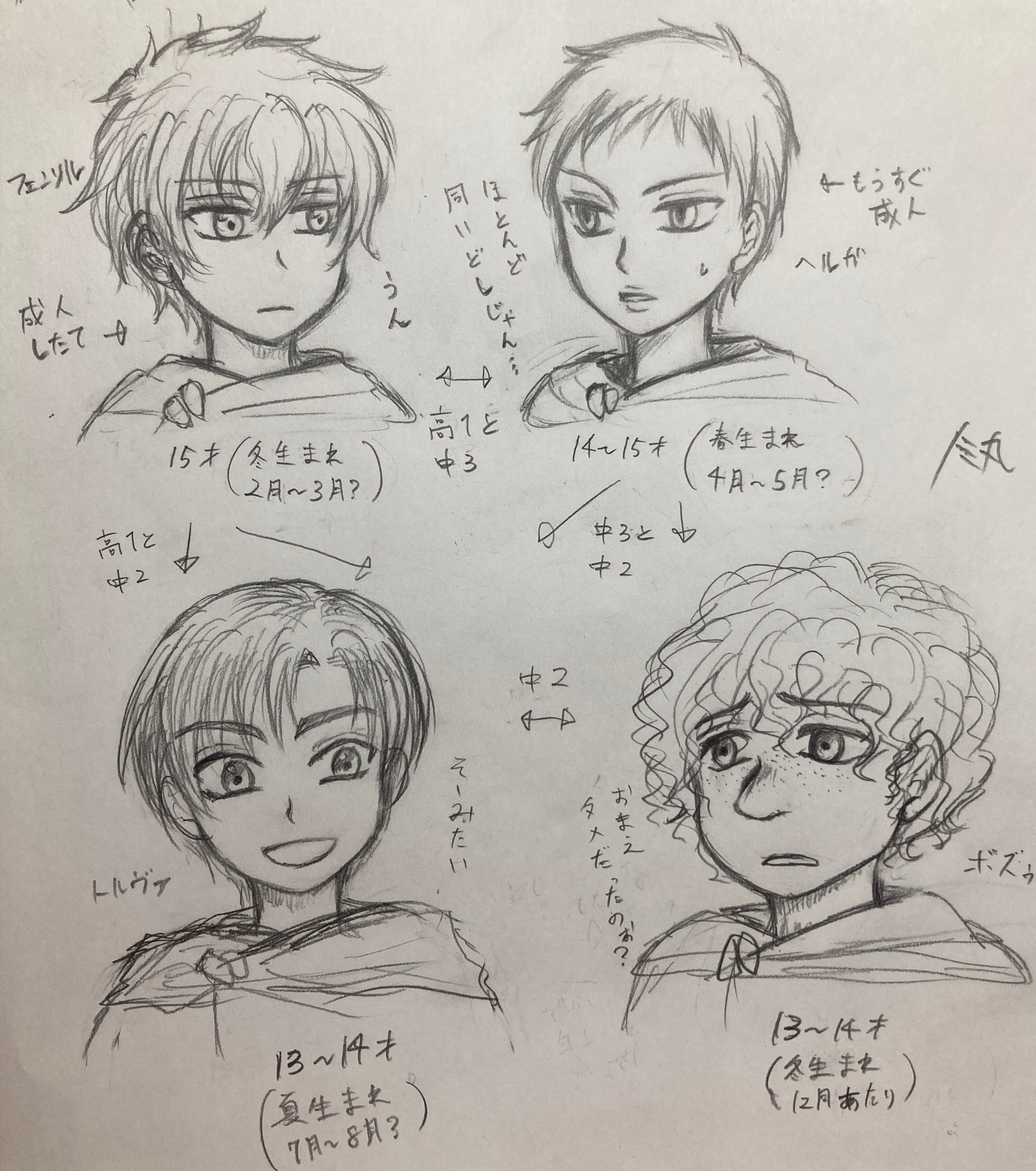 とりあえず主人公中心の年齢設定公開します。