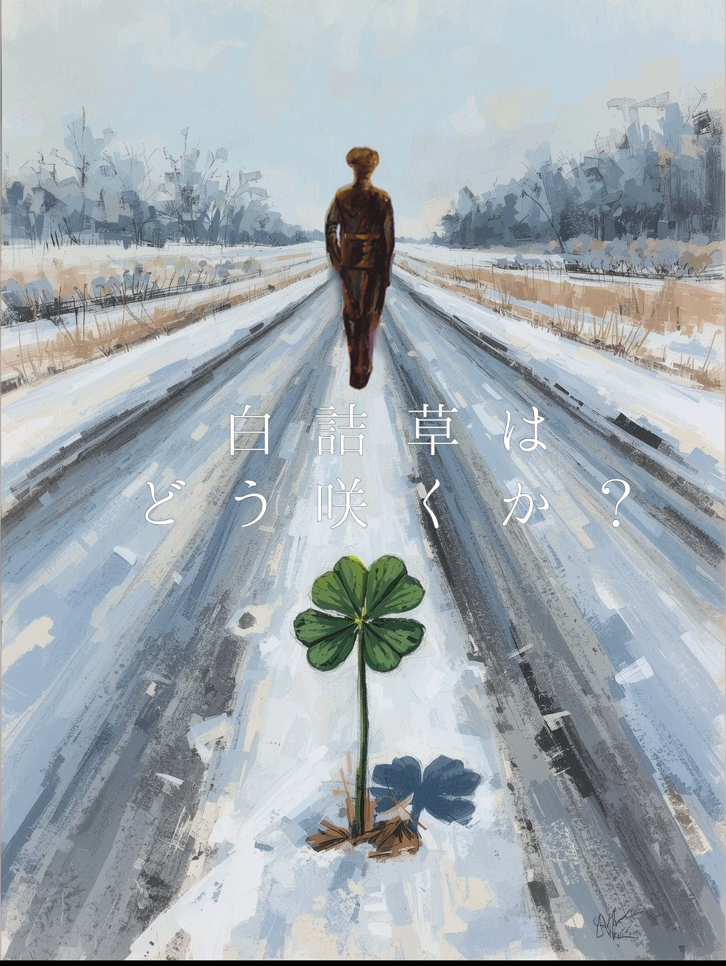 手前にクローバー(白詰草)、そして後ろを歩くのが主人公のイワノフが歩いているという構図です。