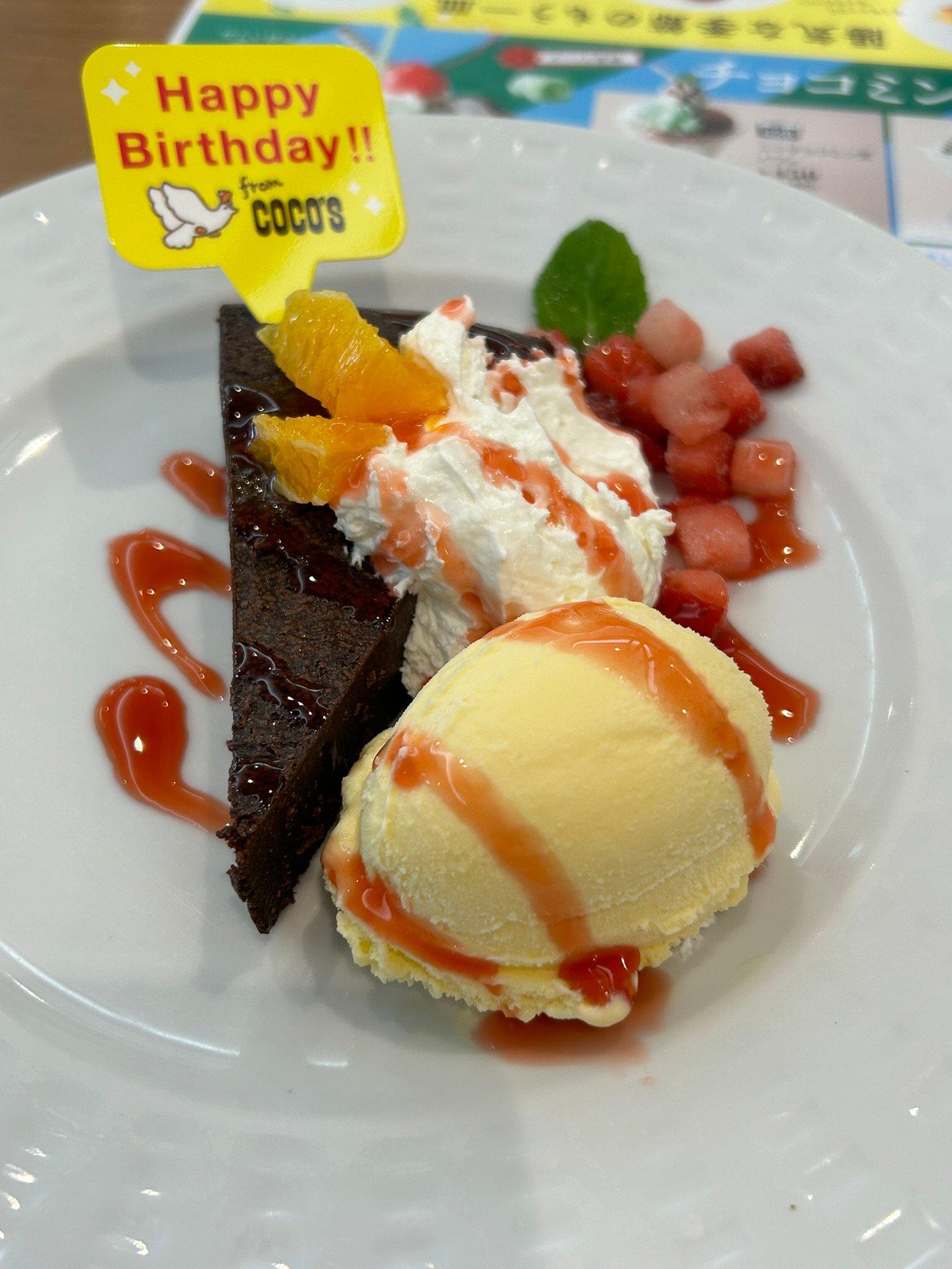 下の写真のデザートを無料でいただきました。