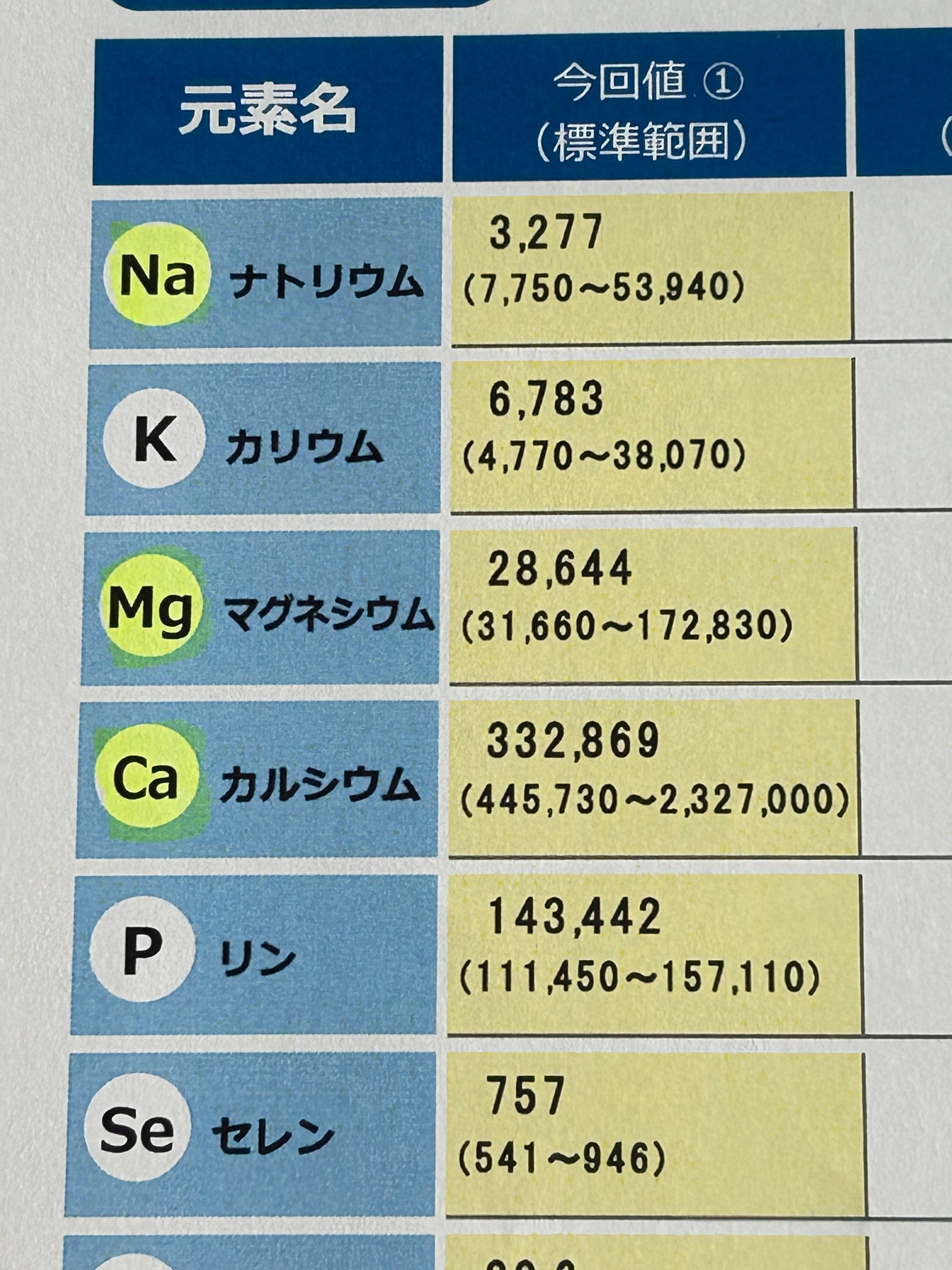 『Na』だけが不足していたと思ったのですが、改めて見直すと『Mg』(マグネシウム)と『Ca』(カルシウム)も不足していました。