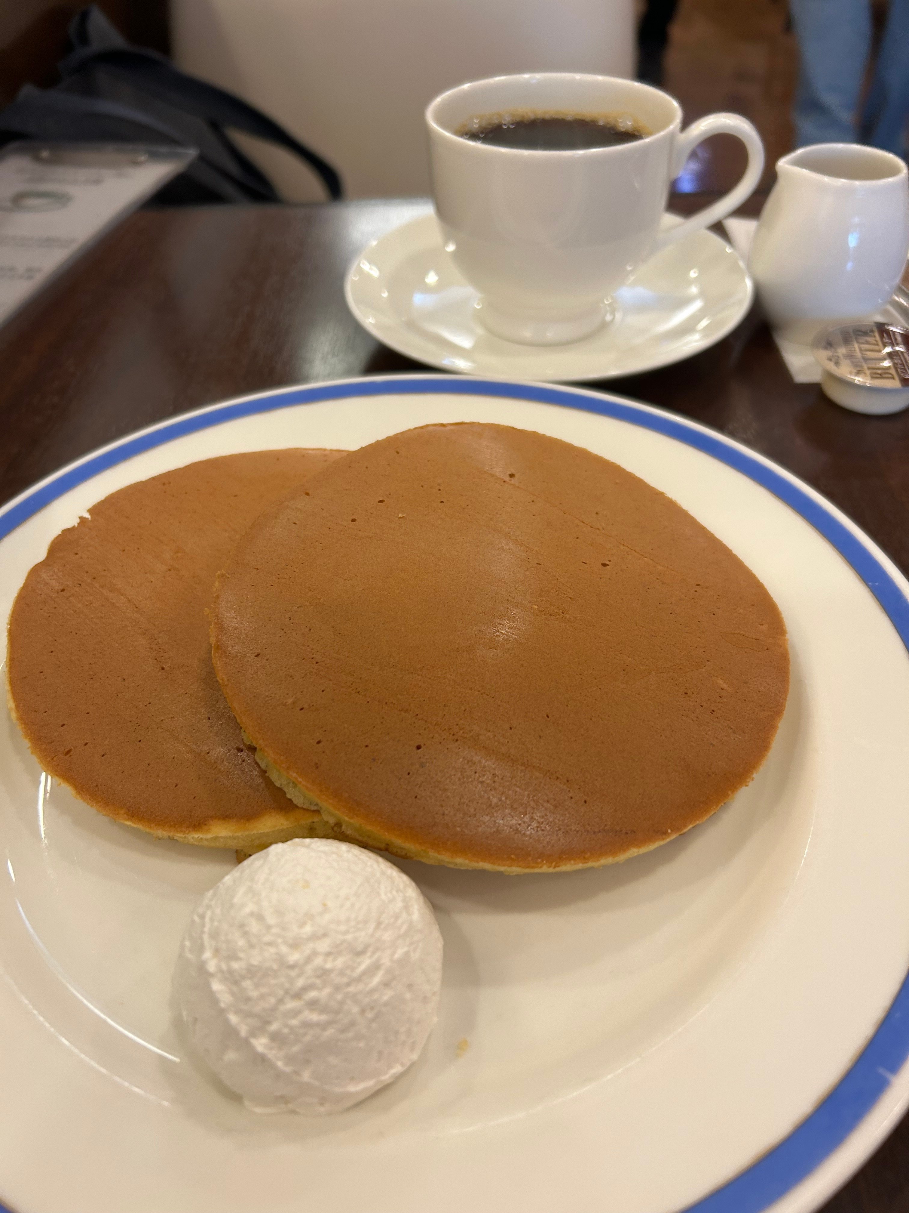 わかりづらいですが、コーヒーの横に、バターとシロップがあります。