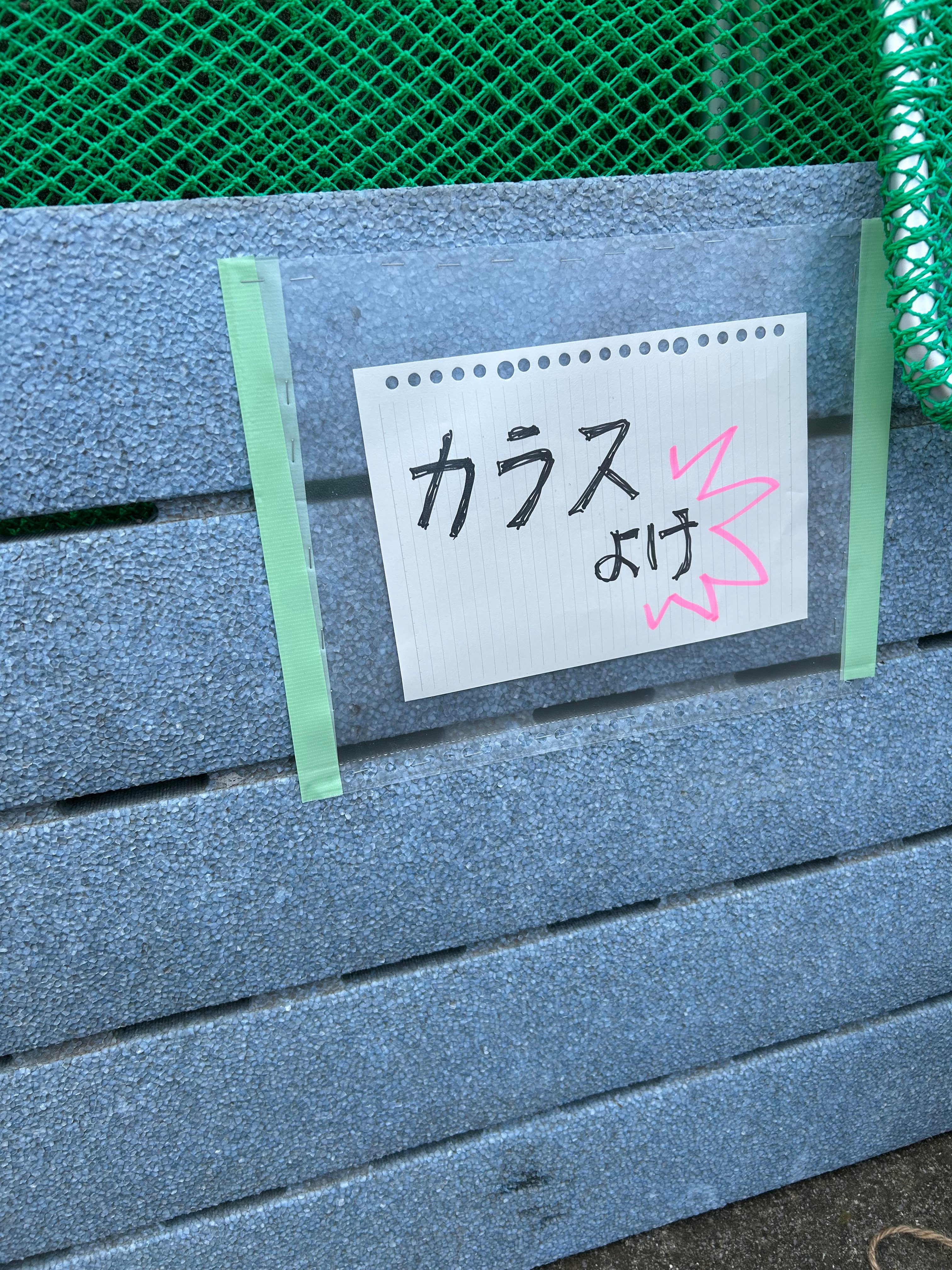スノコ二号には『カラスよけ』と書いた紙を貼った。
