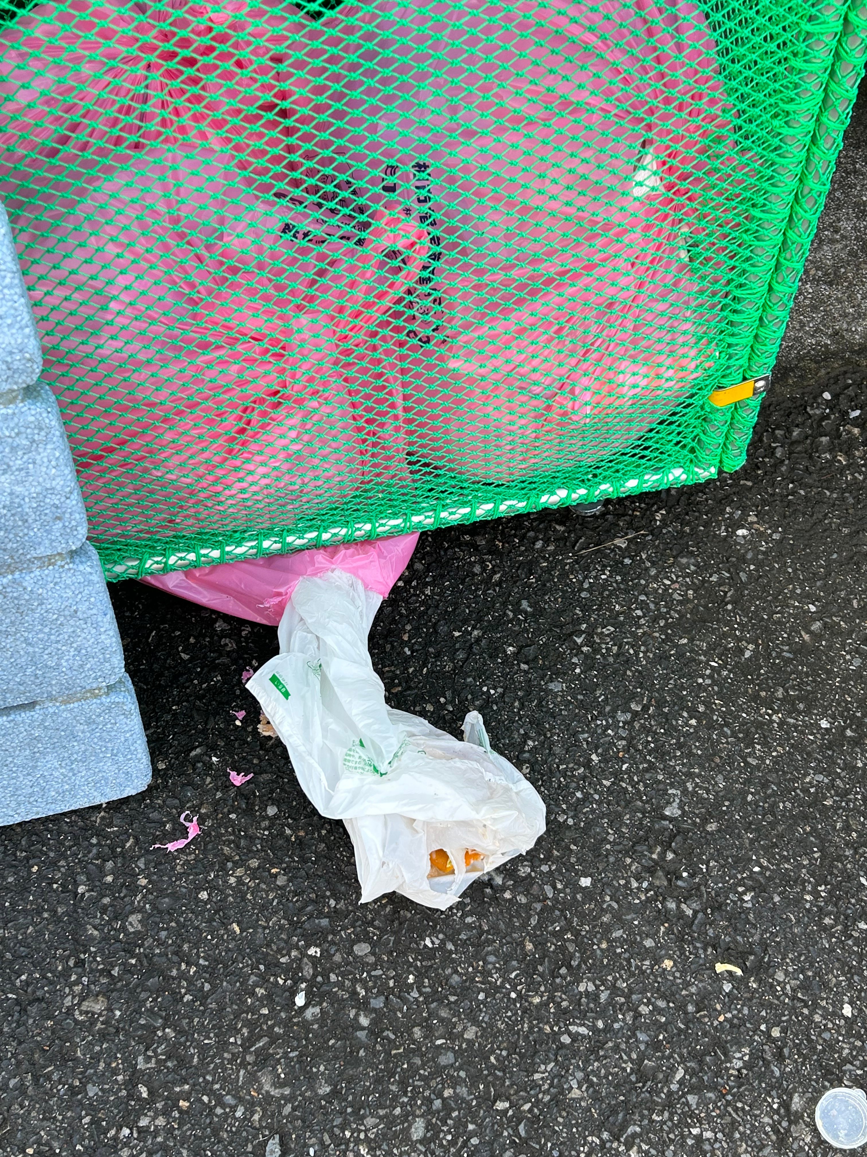 カラス避けを置いても、相変わらずカラスがつつける場所にゴミを出されて、そこからつつかれていました。