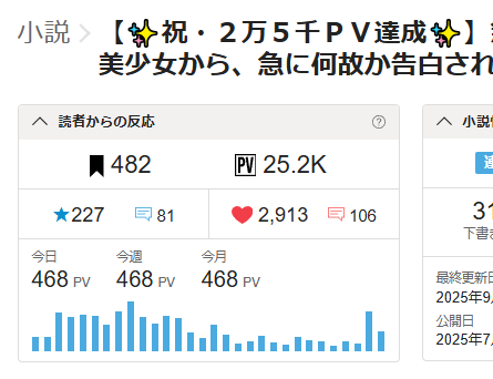 早速ですがこの度『無口な如月さんは 誰にもなびかない。』が25,000PVを達成することが出来ました(*'ω'*)