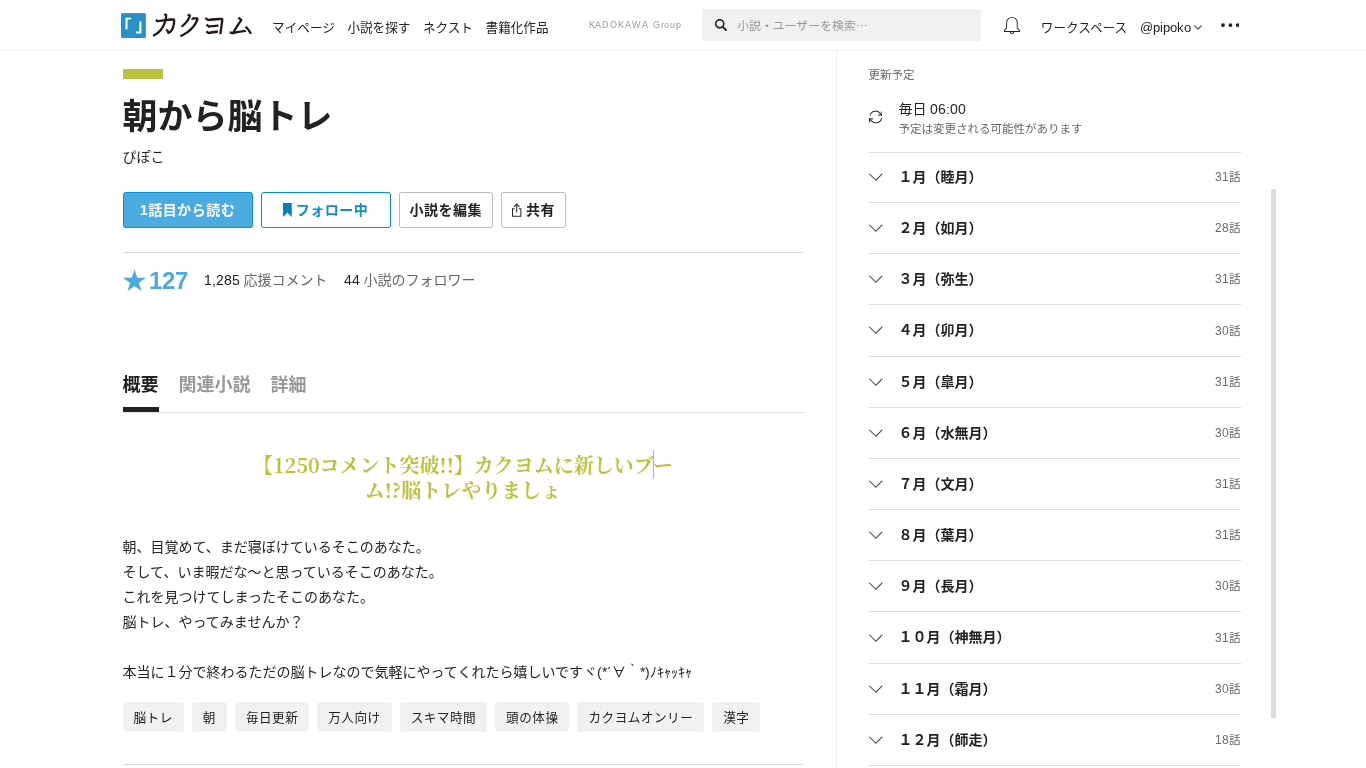 https://kakuyomu.jp/works/16818093090296287792↑「朝から脳トレ」 この機会にぜひ覗いてみてください。