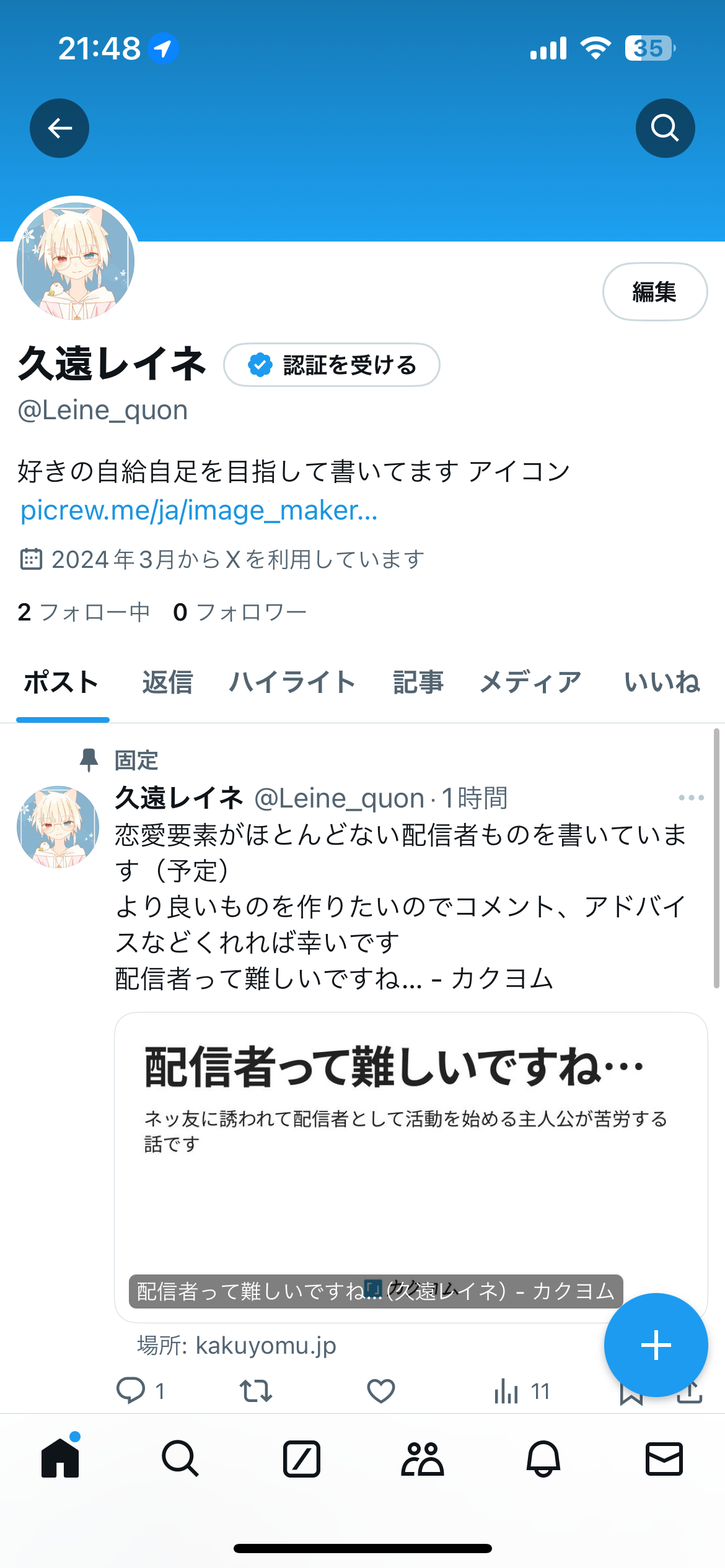 あ、あとキャラクターとか設定は主にXで書く予定なので気になる方は是非(オッドアイ白髪猫耳が目印です)