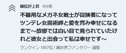 1857位にランクインしました!皆様のおかげです、ありがとうございます!