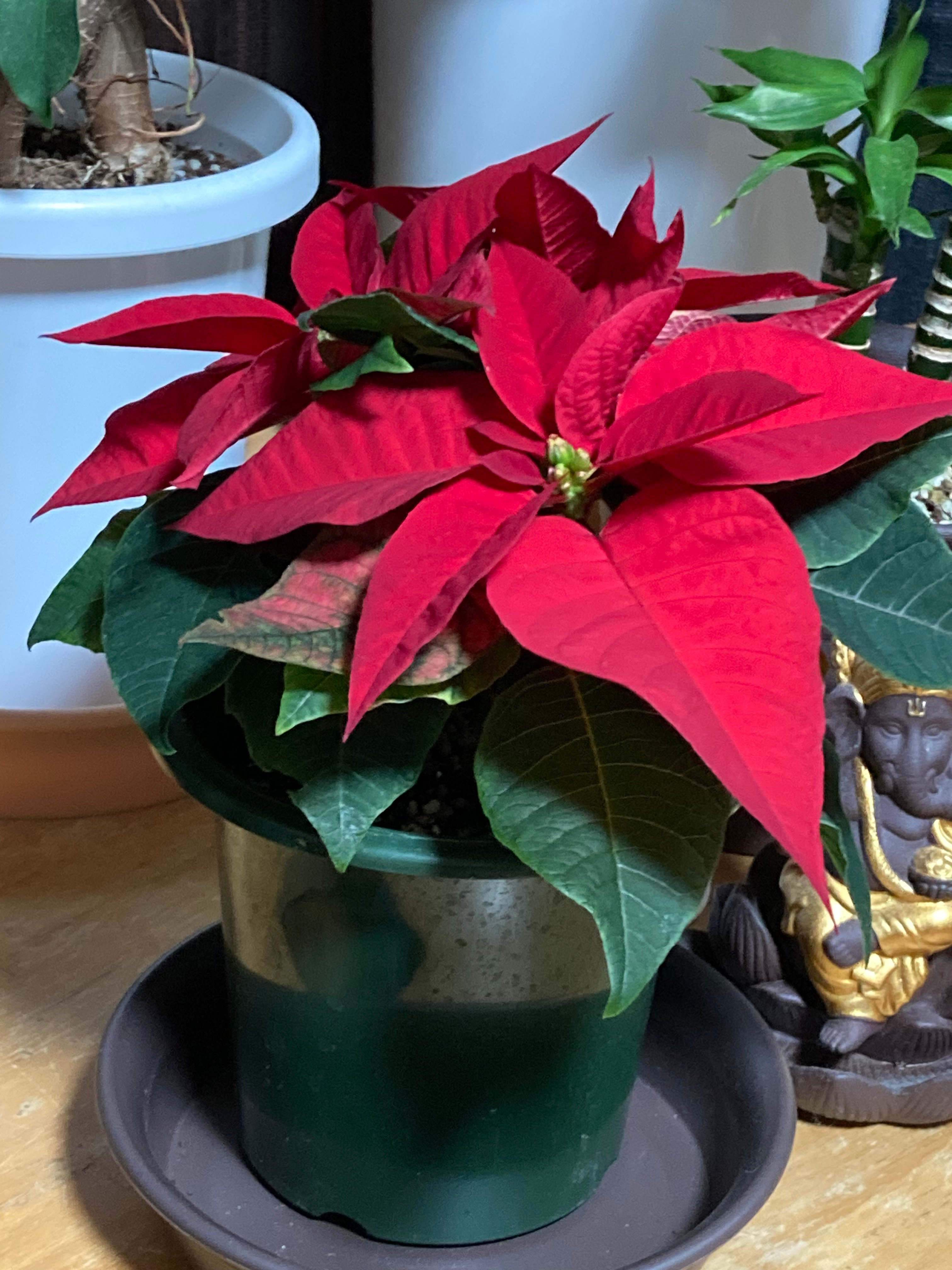 ということで、この時期によく見かけるポインセチア。赤い葉っぱと緑の葉っぱ。ただしいクリスマスカラー。