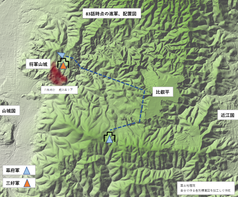 将軍山城 攻略戦の合戦地図(83話時点)