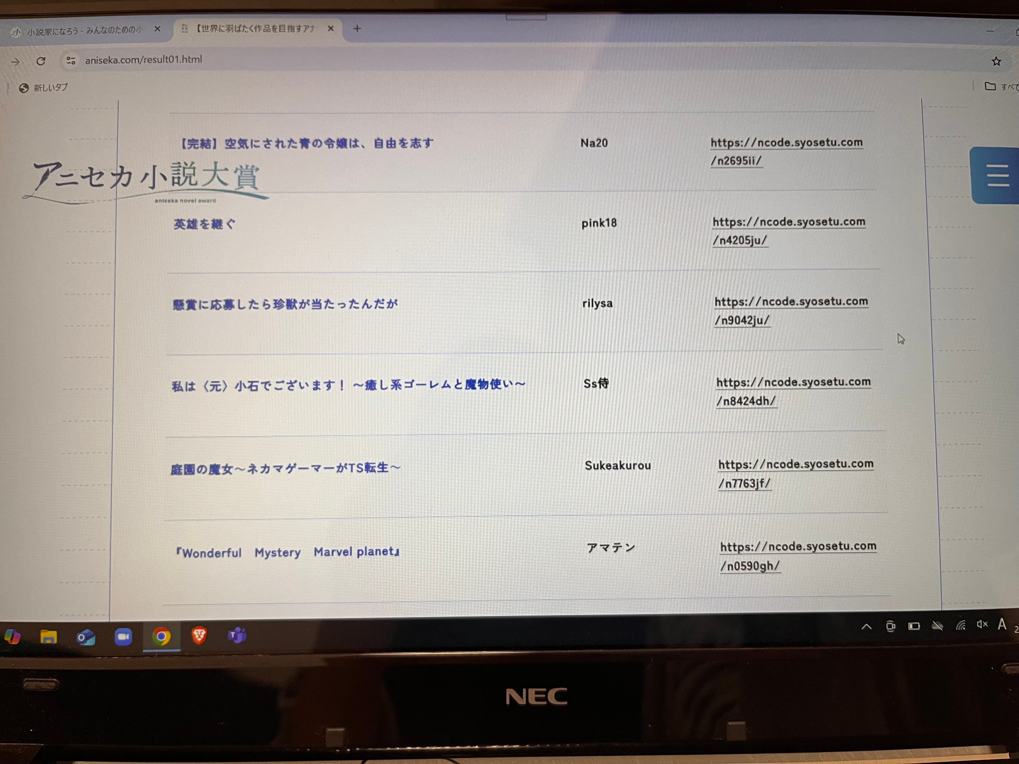 アニセカ小説大賞@小説家になろう 一次選考突破!