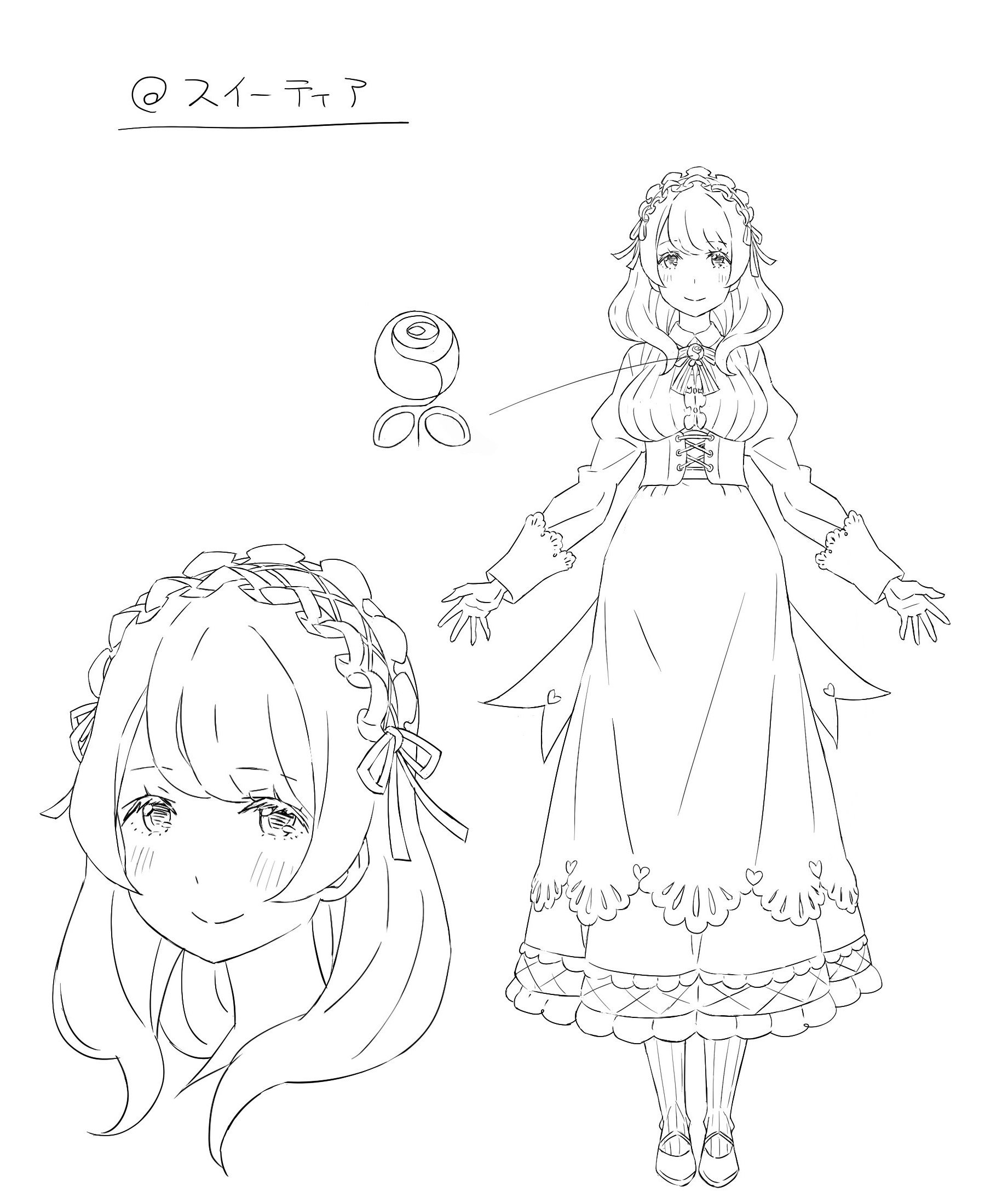 ハート模様の付いた可愛いメイド衣装に包まれていて、なんだか妄想がかき立てられてスイーティア自身が甘い香りが漂うスイーツに見えてくるような…。いえ、錯覚です。なんでもありません。