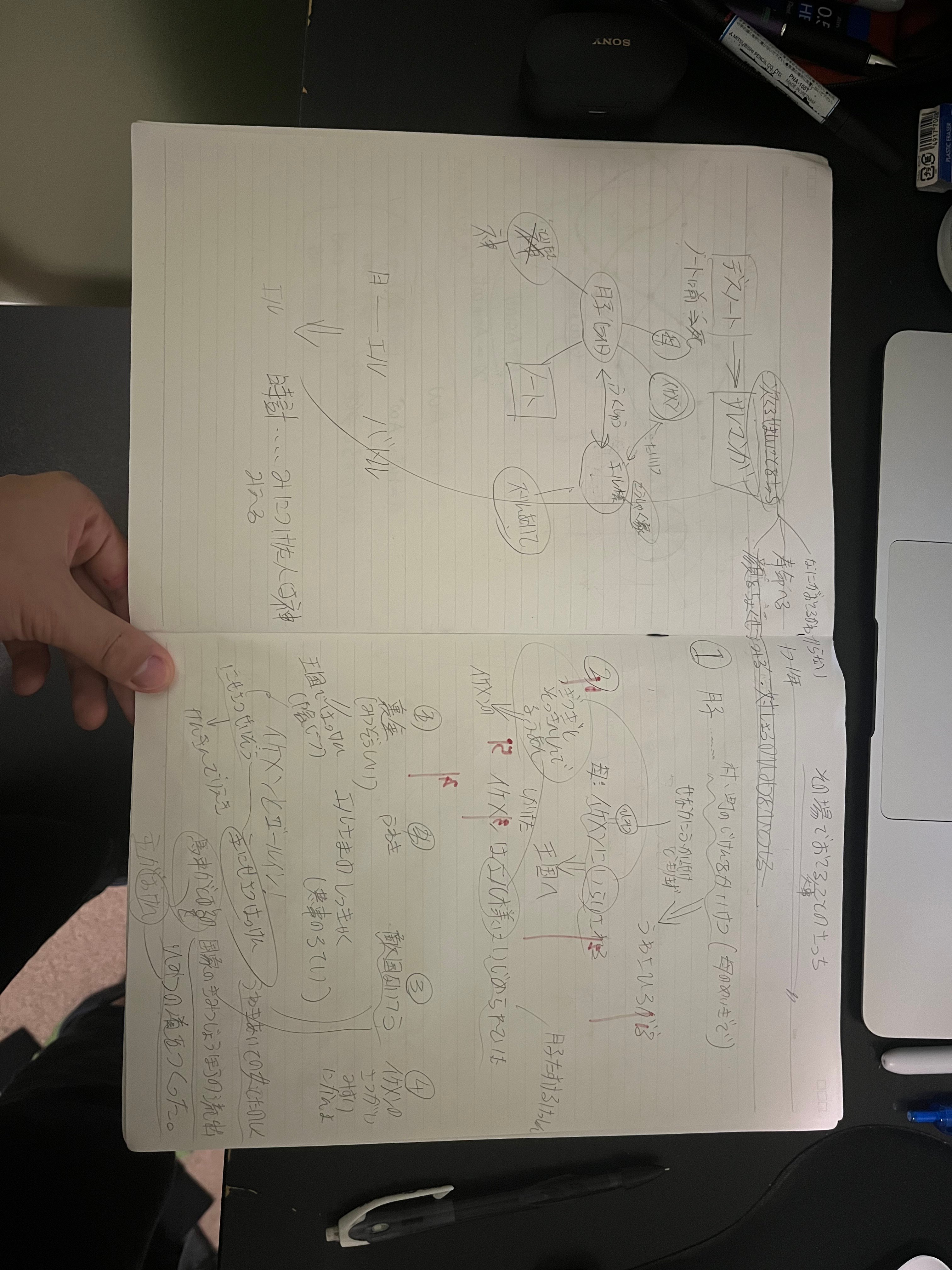 下にプロットの一部写真を載せておきます。人が読める字で書いていませんし、漢字が苦手でひらがなばっかりなので人によっては不快かもしれないですが。
