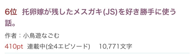 ノクターンノベルズで投稿してる作品が日間ランキング6位٩(ˊᗜˋ*)و