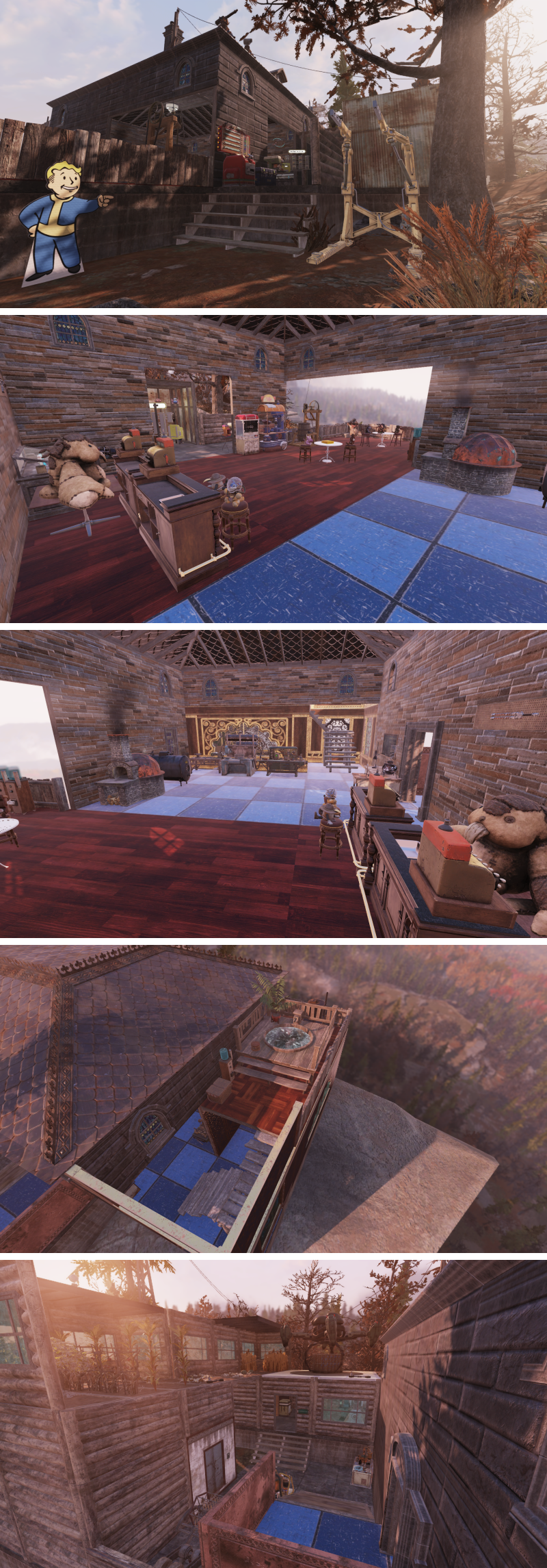 2枚目は店内の様子。このゲームにおけるキャンプ設営で最も難しいところは、店風のキャンプを作ると、店員や客がいなくてすんごく寂しい見た目になること。どんなに凝った建物を作っても、利用者がいないと廃墟感が漂いがち。