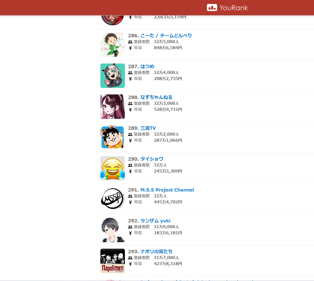 絶望ライン工ch(名言「地獄です!」だが、チャンル登録者32万人になり、年収が500万円〔動画再生回数により100万とかの場合ある。秘密みたい〕とかになって登録者に突っ込まれるが芸風は変えないw)