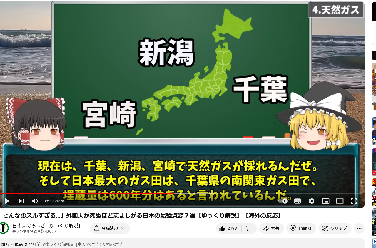 日本近海のメタンハイトレードとか、佐渡島沖のガス田、山口、島根、九州、尖閣諸島にもガス田や油田があって、資源大国なんだよね。日本って。