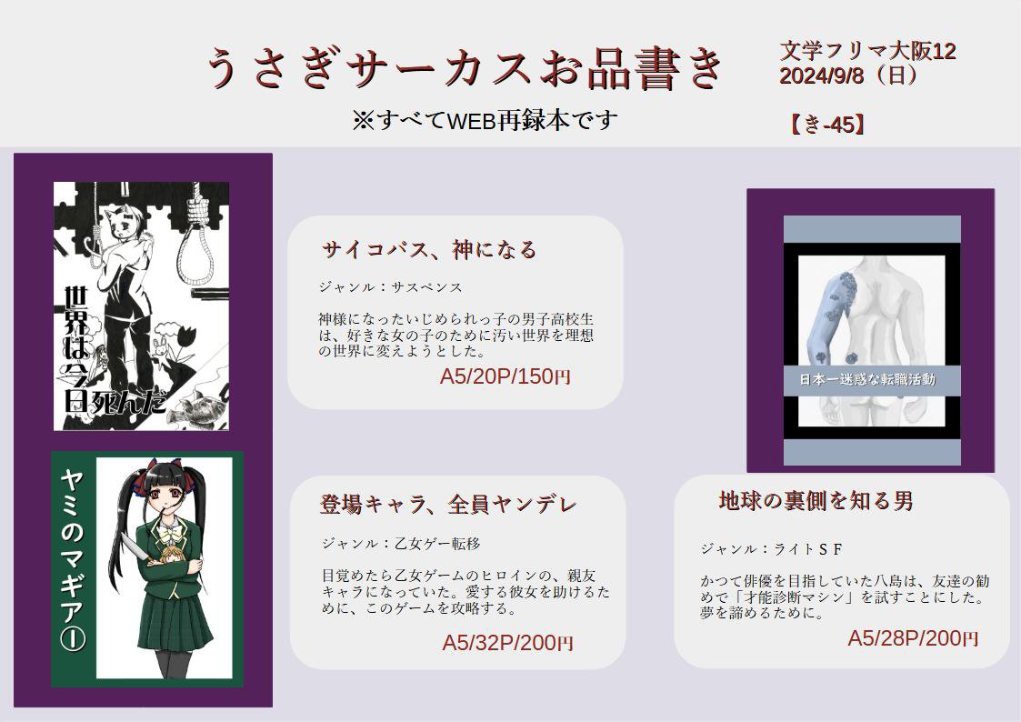文学フリマのお品書きができたのでこちらにアップしますね。