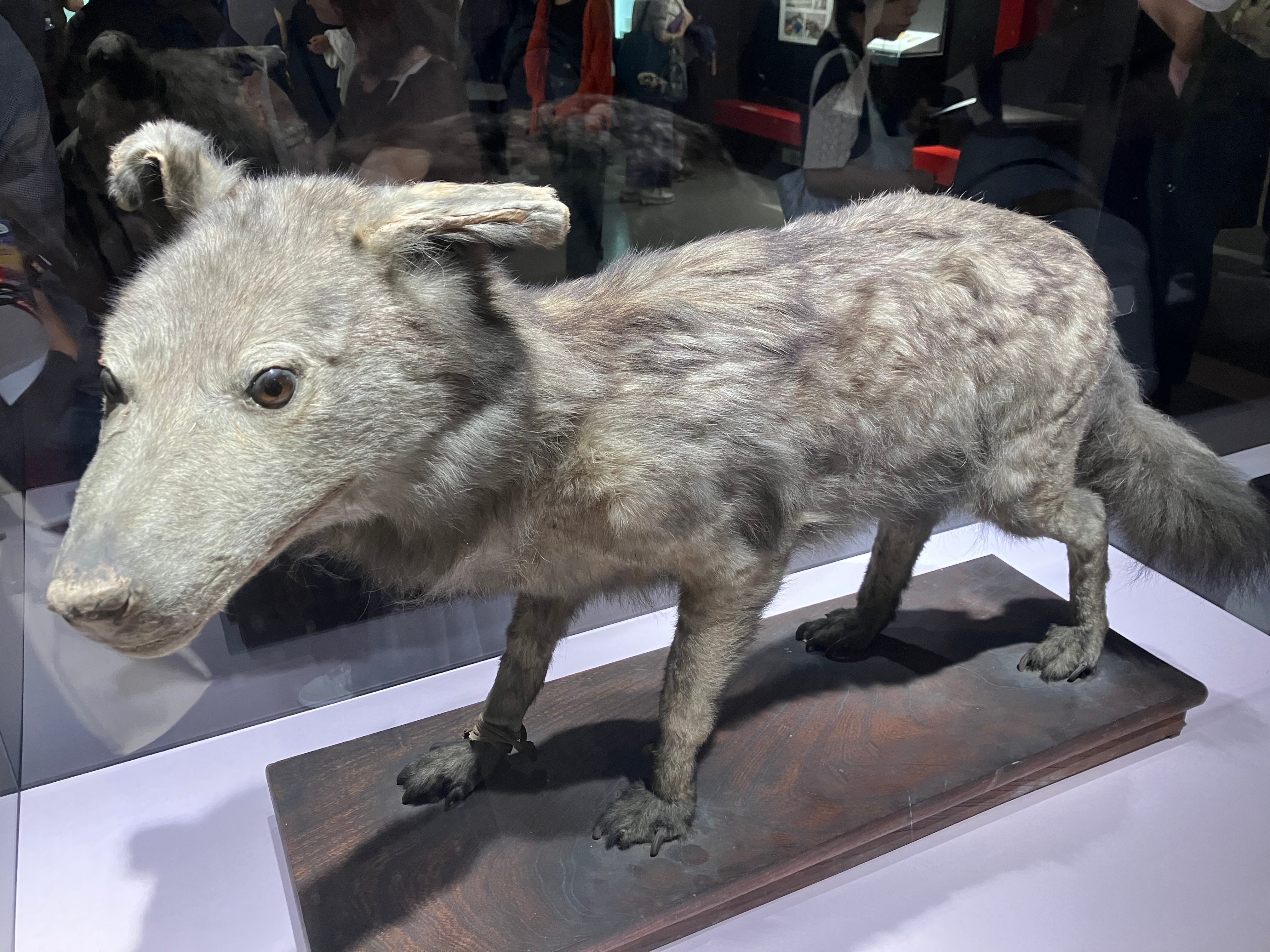 写真↓はオマケです。少し前の科博展示で見た新発見のニホンオオカミの剥製になります🐺