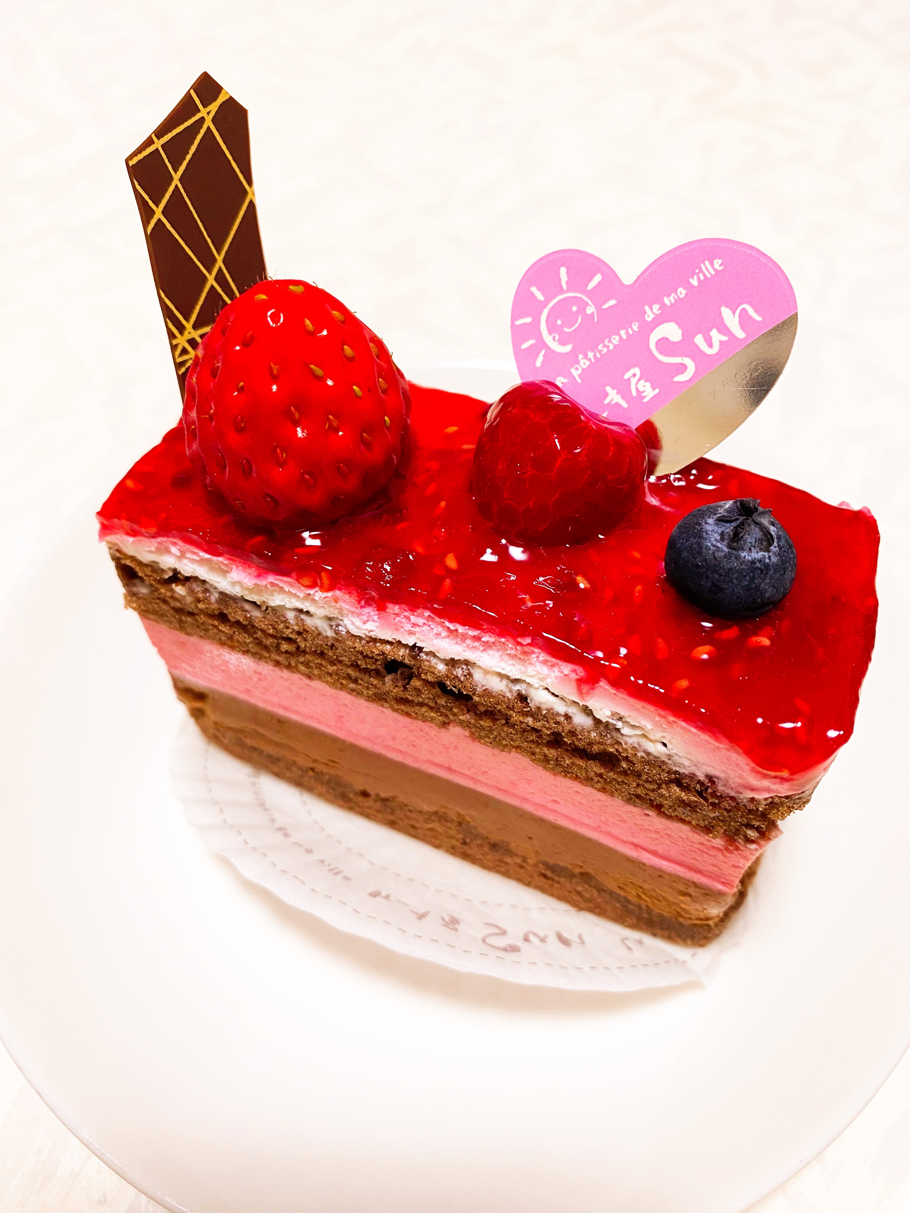 お祝いのケーキは「ケーキ屋Sun」さんの木苺ショコラ。