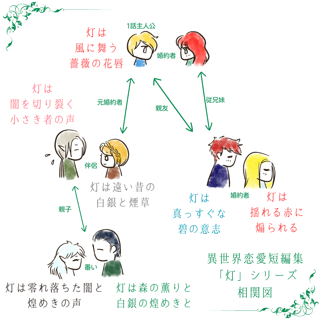 異世界恋愛短編集「灯」シリーズ 相関図イメージイラスト