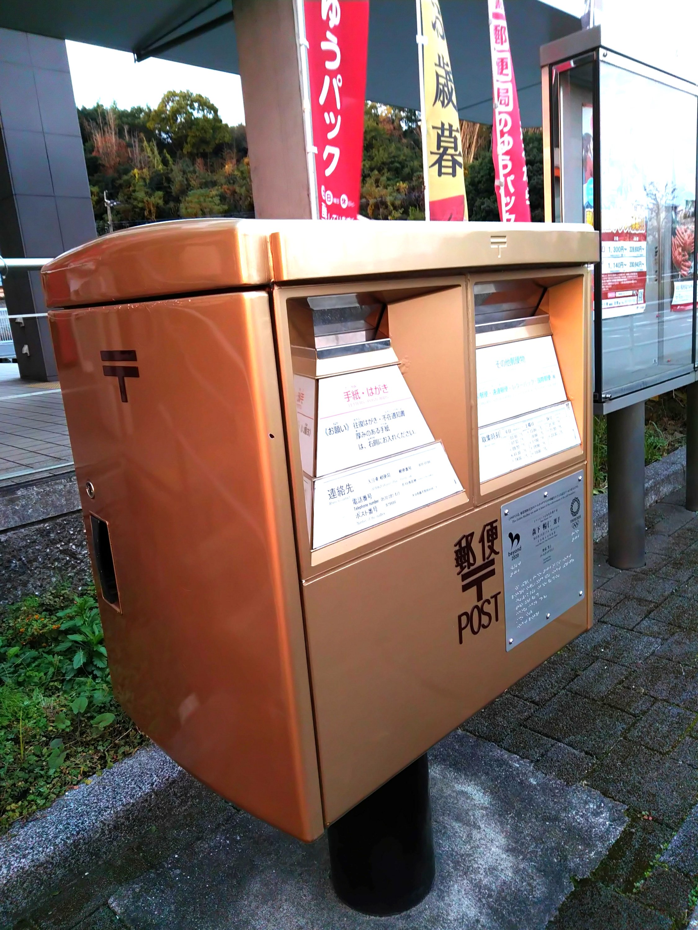 さて、ちょっと前に散歩しているときに、時々利用していた郵便局のポストが金色に変わっているのに気づきました。地名に「金」がつくからかしら、なんて思ってましたが、東京オリンピックで活躍した選手を称えて設置されたゴールデンポストなるもののようです。大分には三か所にあるらしいですね。そこまで派手すぎることもなく、郵便局の外観に溶けこんでいます。