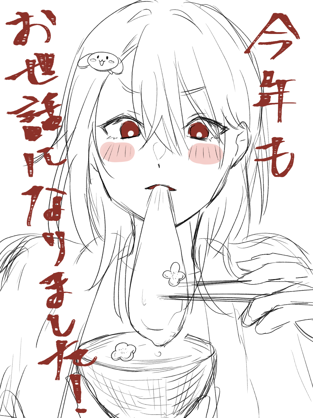 お餅を食べている女の子です。前回の近況ノートが、恐ろしいことにハロウィンなんですよね。せっかくですので同一人物にしてみました。