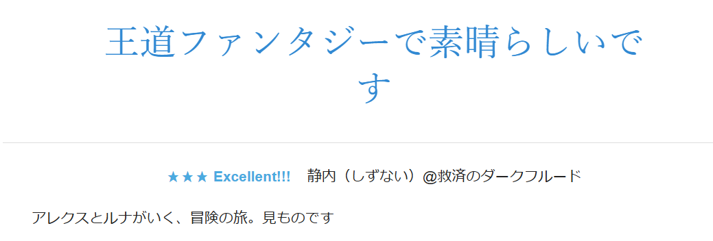 静内(しずない)@救済のダークフルード様、レビューありがとうございます。