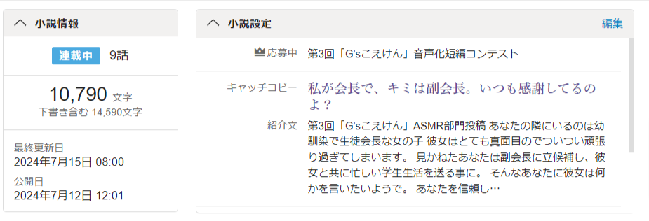 「G’sこえけん」コンテスト用のASMRを書きました。