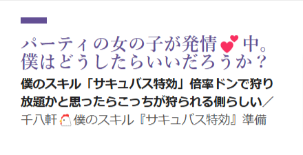 https://kakuyomu.jp/works/16818093089325358788僕のスキル「サキュバス特効」倍率ドンで狩り放題かと思ったらこっちが狩られる側らしい