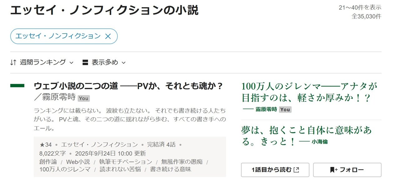 なんと……カクヨムの「エッセイ・ノンフィクション部門」で