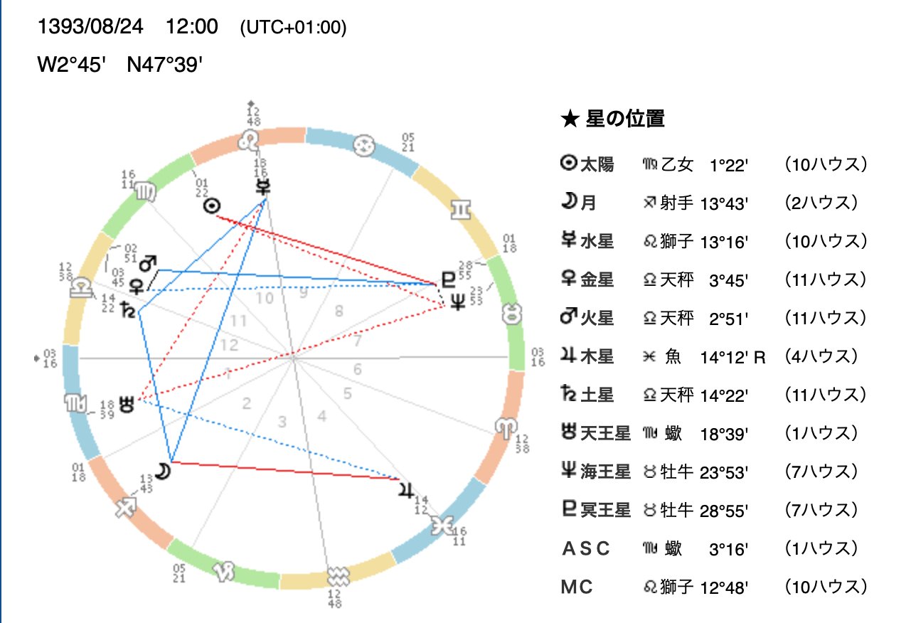 ▼【占星術】リッシュモンの誕生日を占う:1393年8月24日