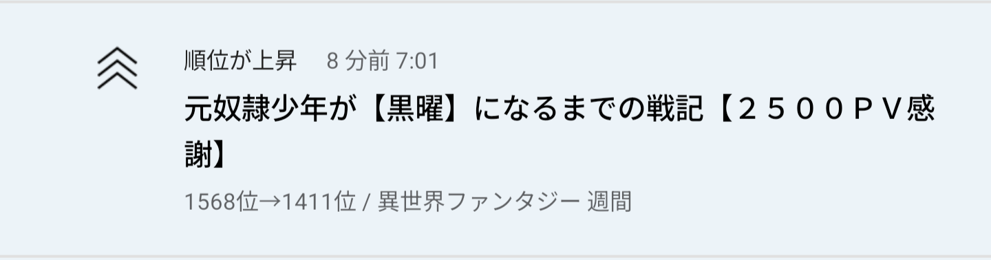 僕にとっては快挙な出来事がありましたので、共有したくて書きました。異世界ファンタジー週間ランキングではじめて、1411位になりました。
