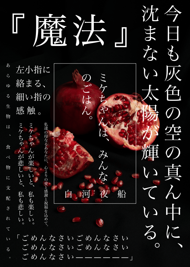 本作は『漂流教室』をイメージしながら書いた作品です。漂流教室みたいな不毛の世界に、安定して食べられる物が一つだけあったらどうなるかなぁとぼんやり想像しながら書きました。