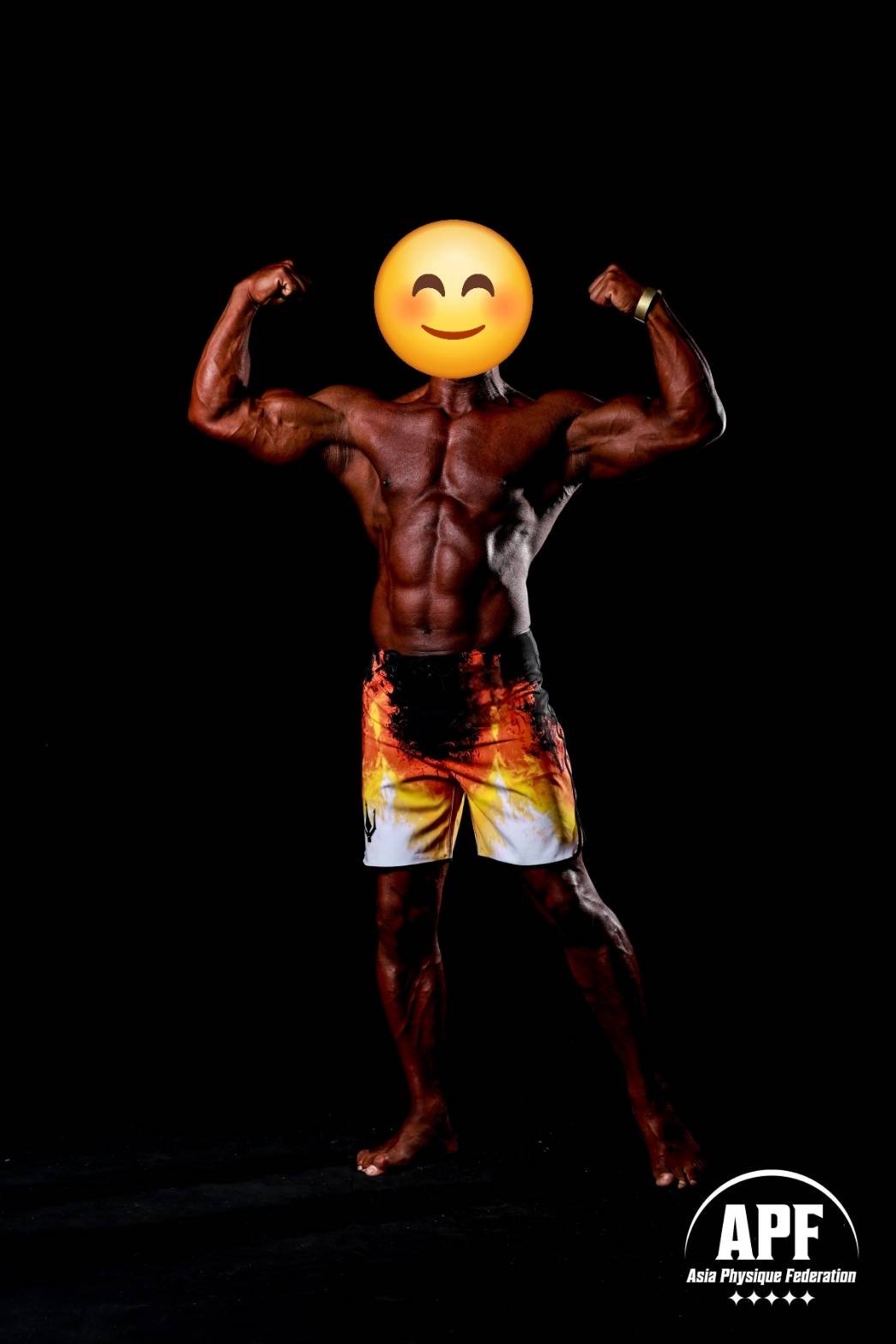 素晴らしいバルクですが、絞りがあと一歩足りませんでしたね。もっとバキバキに出来たら、表彰台を争っていたことでしょう。まあそれでも50代のおじさんだと思うと、信じがたい肉体ではありますがw
