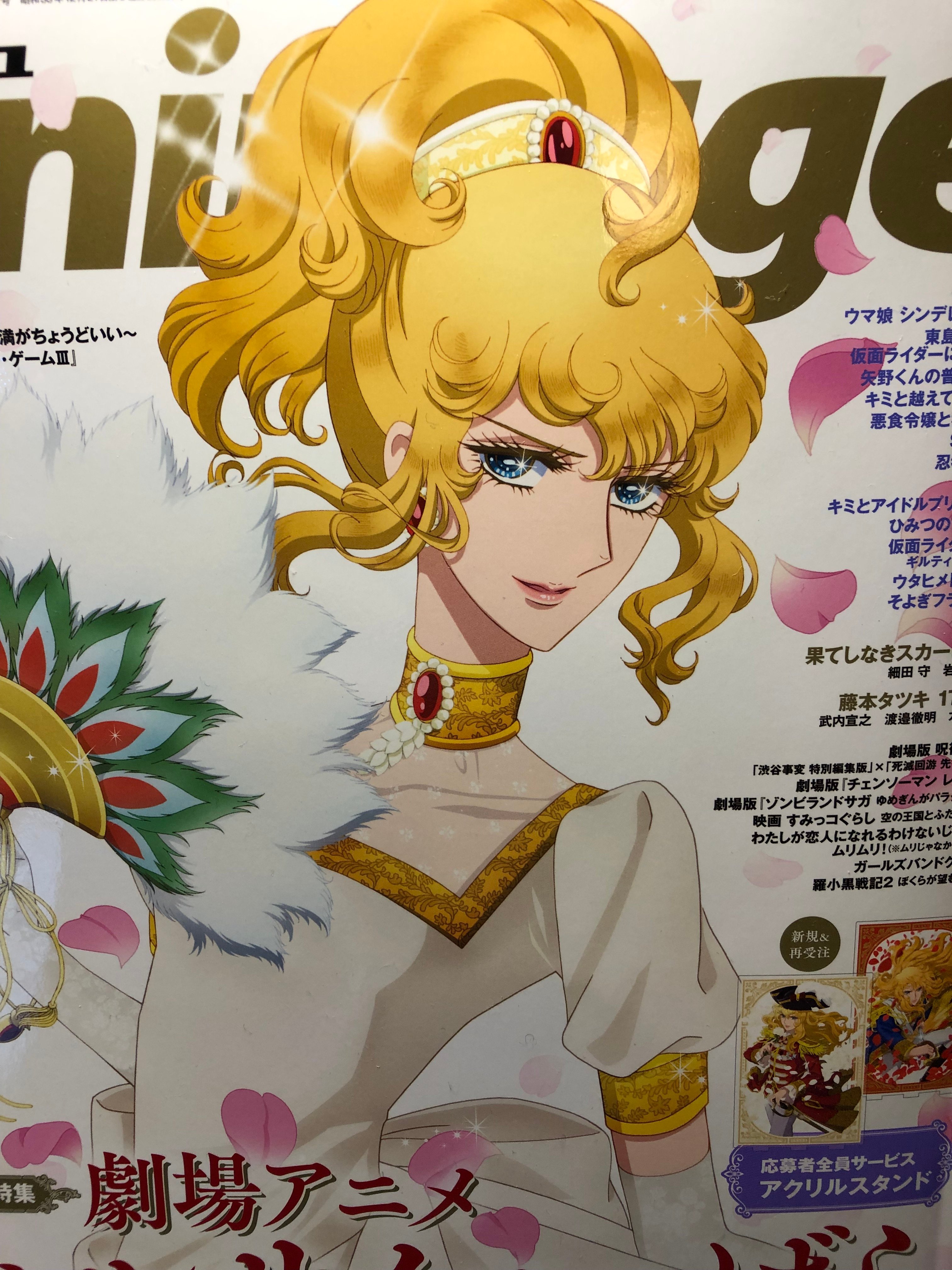 添付の画像は、うちの女房が読んでいたアニメージュの表紙です。ベルばらのファンなんですって。表紙は、ほかにはないオスカルのドレス姿です。これ見て、「あれ? アロイスも女装癖ありだったよな。髪はショートで、背ももっと小さいけど、こんな感じ?」と思ったので、ご参考までに張り付けて置きました。