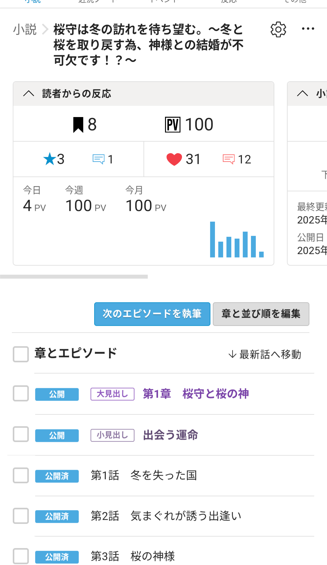 https://kakuyomu.jp/works/16818622174144744108の総PV数が100になりました!!