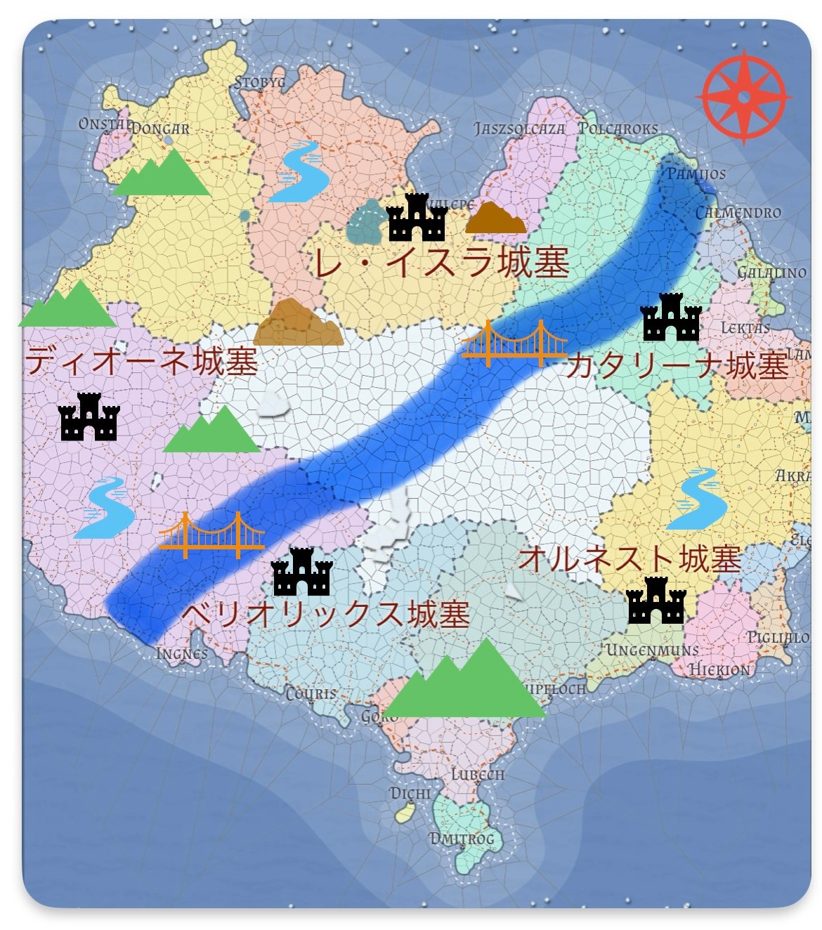 あと、中央の青い太線は一応『大河』のつもりです(笑)