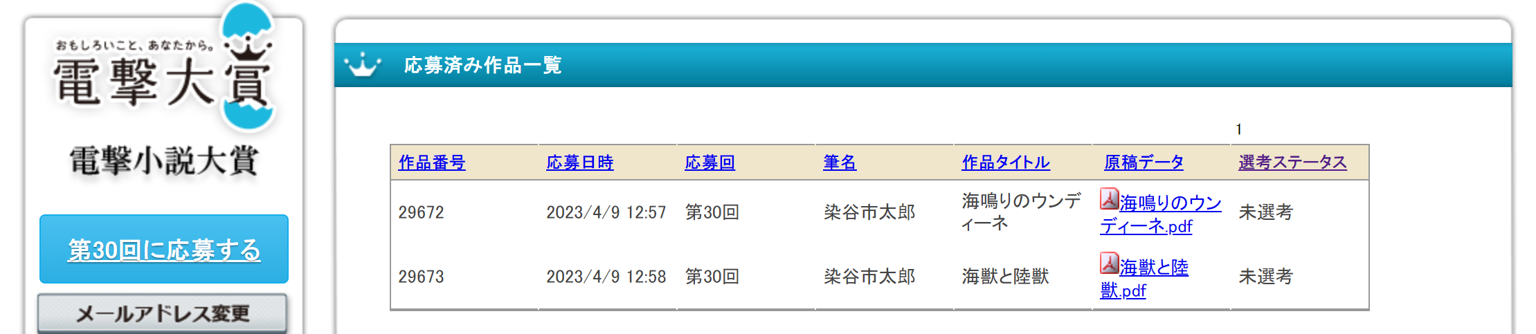 電撃大賞に、短編と長編を応募しました。