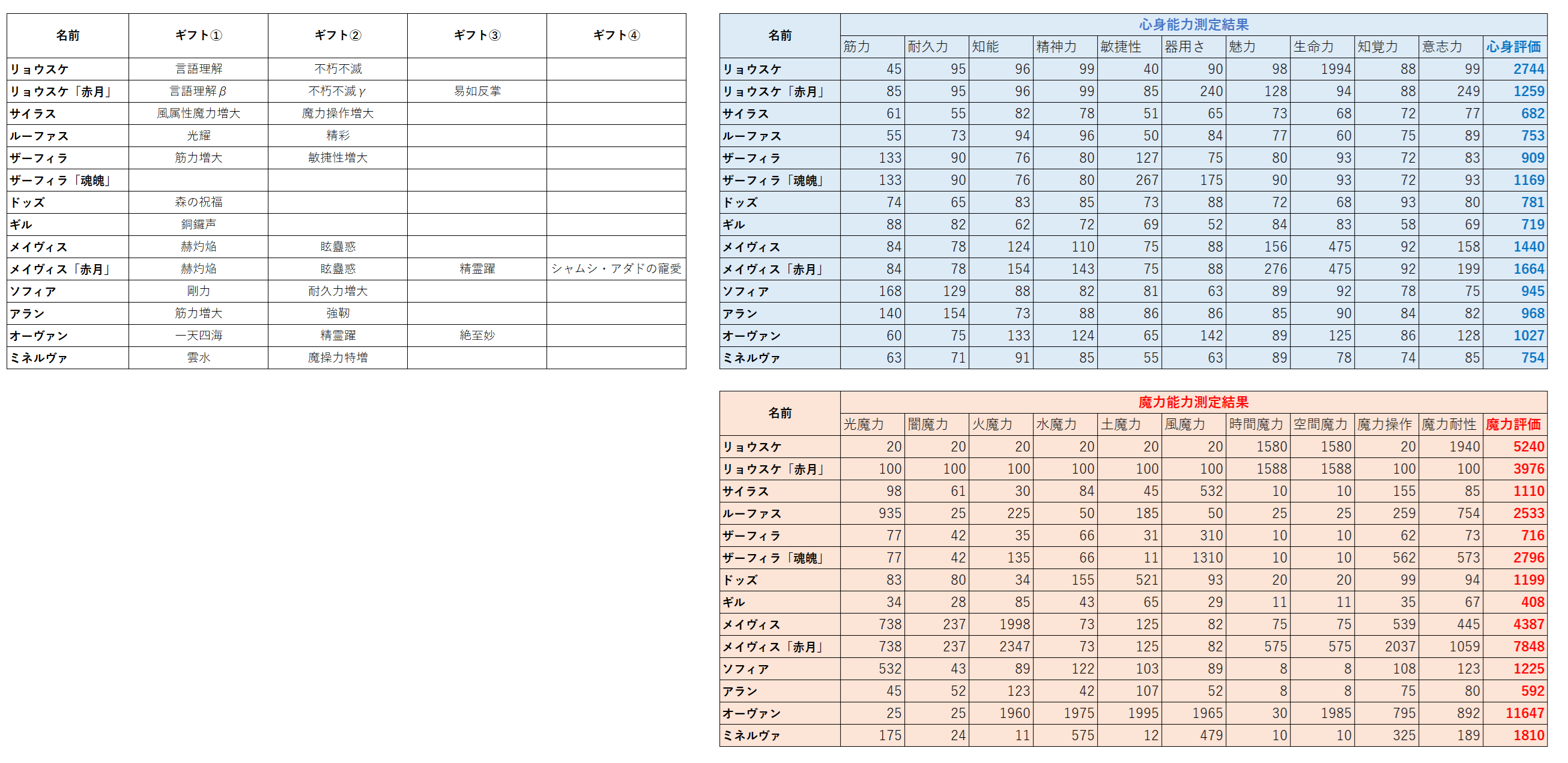 オーヴァンとソフィアは作中では測定してませんが、載せてあります。