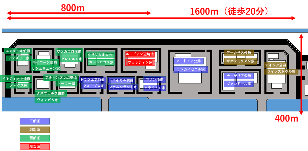 トリス街貴族区の屋敷配置と距離感をUPします。