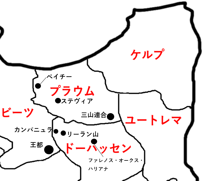 本当にやっつけ仕事と言うか、あくまで私が書いている時に間違えない様に、程度のものではありますが……今になって、ステヴィアと三山連合の場所間違えたなぁという気がしますね、もっと三山連合に近い位置にすべきだった。