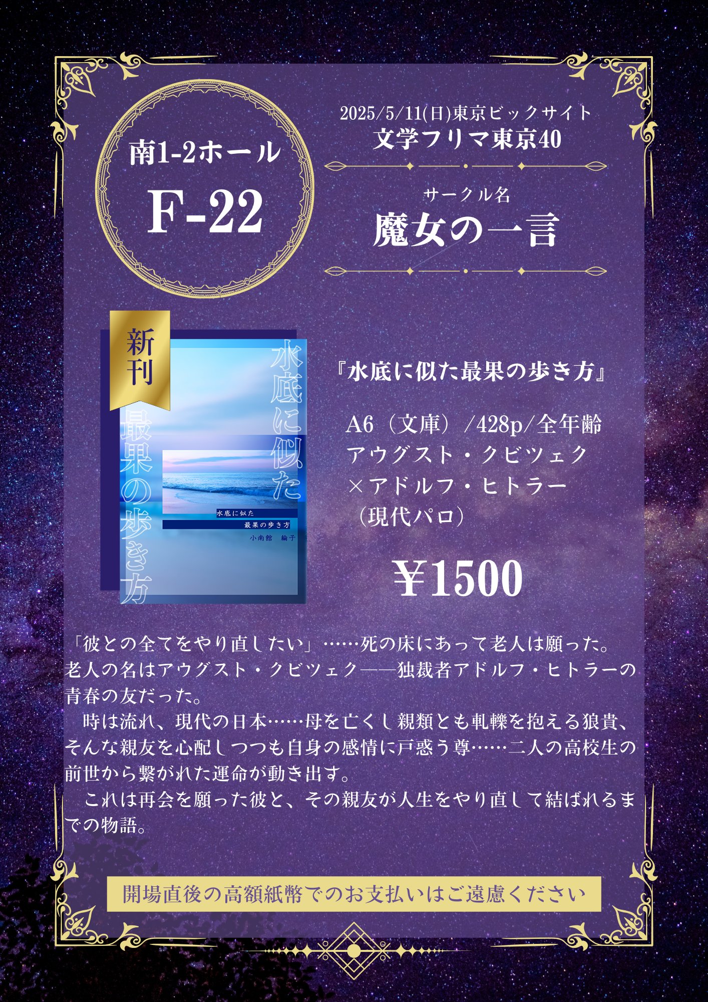 本日5/6㈫㈷17:00よりカクヨムに投稿する歴史創作(現代パロ)『青春の友二人で現代パロ』を加筆修正、改題した小説同人誌『水底に似た最果の歩き方』を販売します。