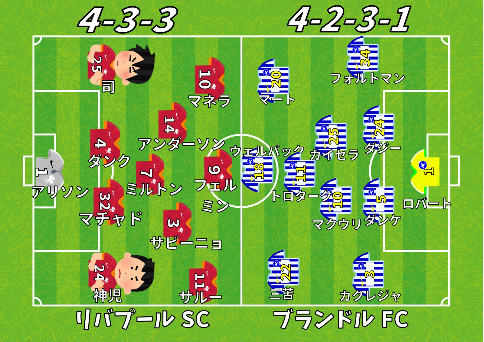 リバプールvsブランドル メンバー表