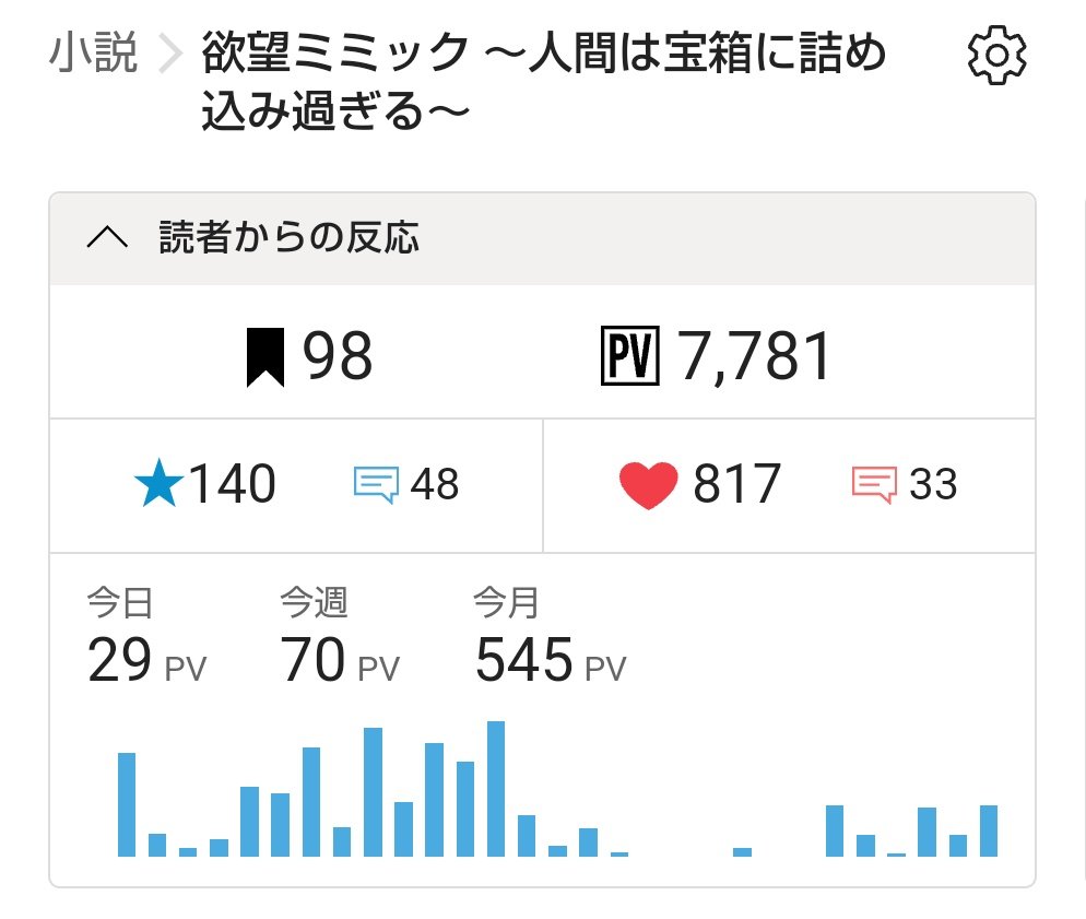 欲望ミミックが、いつの間にやら7777PVを通過していました。わーい💃✨ありがとうございます!