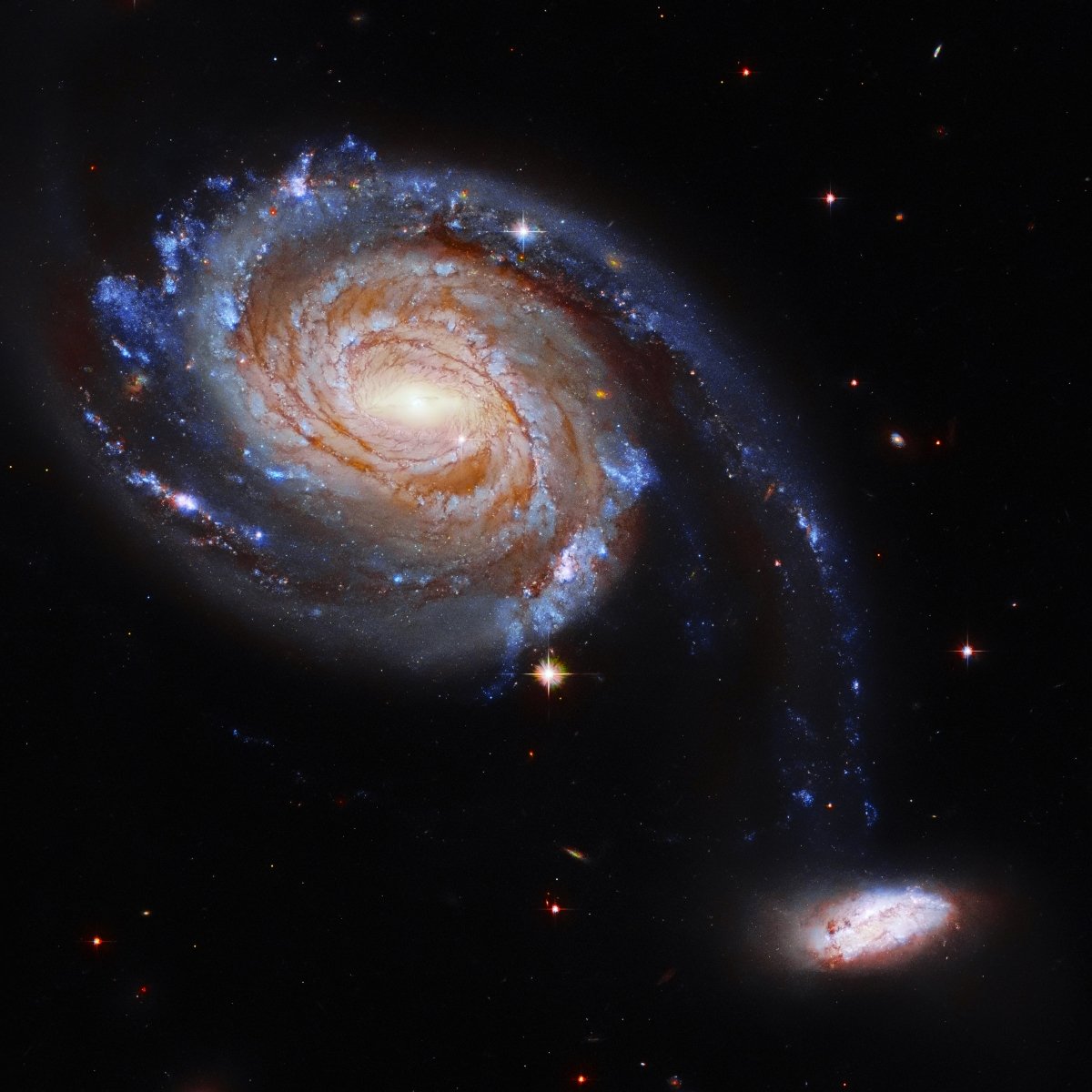 銀河系とアンドロメダ銀河の二大銀河を含む、局所銀河群(ローカル・グループ)を統一した星間国家のイメージです。 ESA/Hubbleのフリー画像(実際はNGC7753銀河と伴銀河NGC7752からなる、相互作用銀河Arp86)からお借りしました。