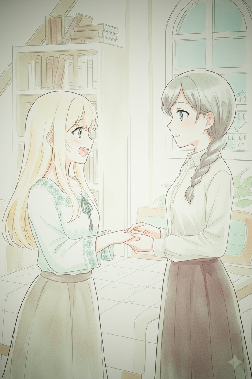 手を取り合うエマとアンナ