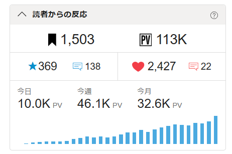 最終的な目標は★の1,000突破になりますが、現段階でも本当に嬉しく思います。
