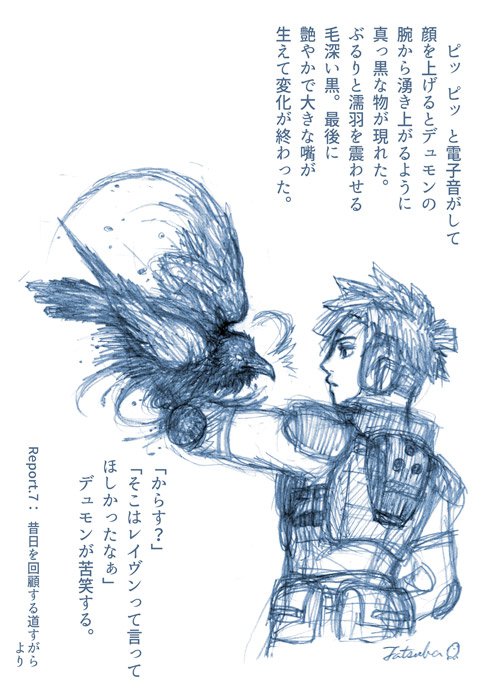 描き上がってから調べ直したらワタリガラスの全長は60cmらしく、これだとまだちょっと小さかったというミス。