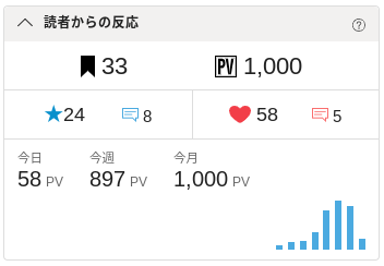 あれから2日ほどで1,000pvを達成しました。