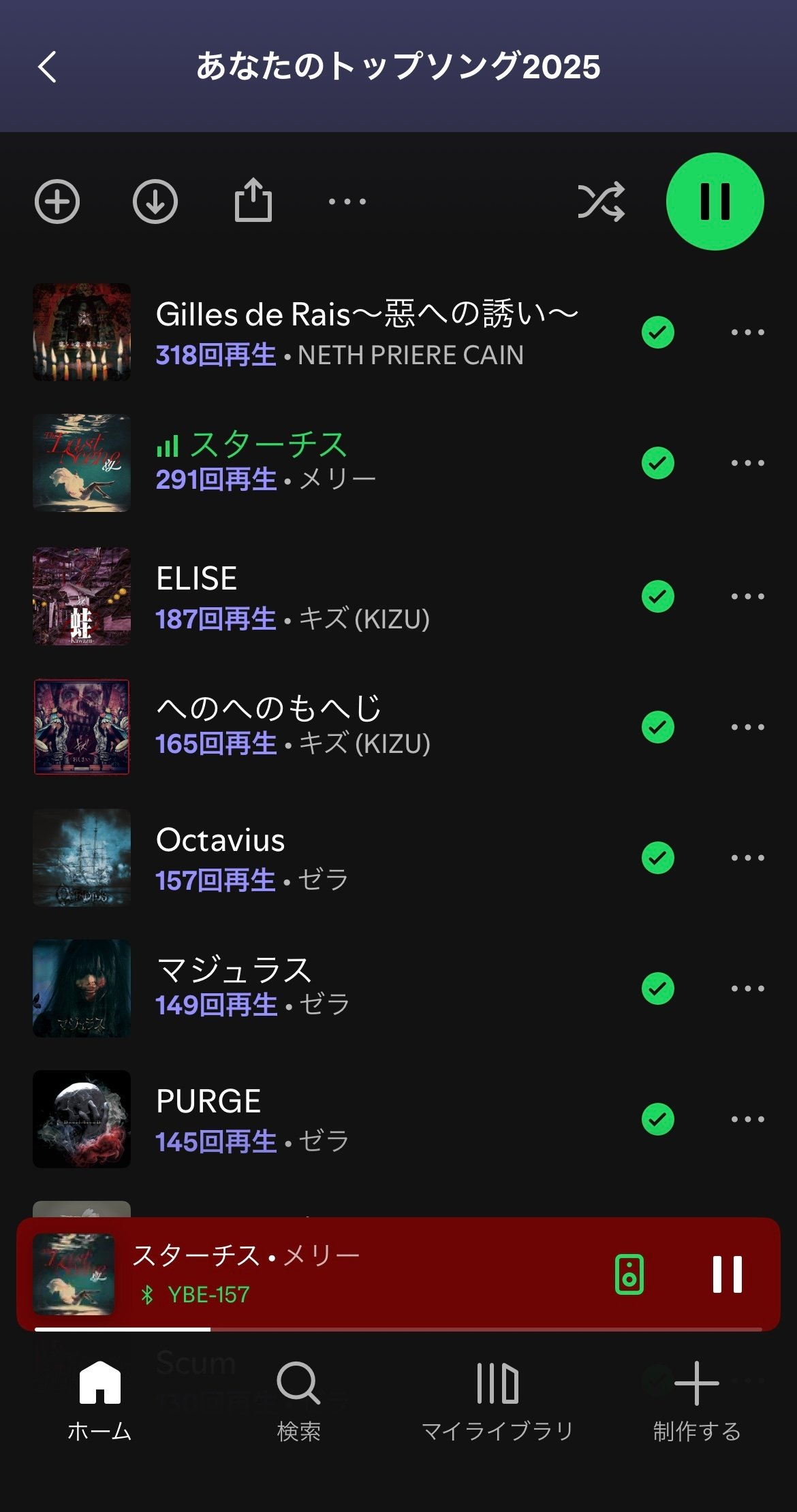 Spotifyが勝手に1年のまとめとやらを挙げるものだから、